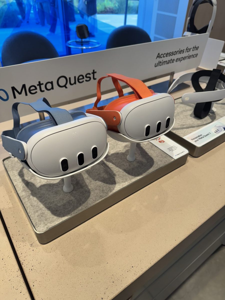 Metaストアでは、『Meta Quest』やARグラスが販売されていました。店員さんにARグラスの機能について丁寧に教えていただき、「技術はここまで進歩しているんだ・・・!」と感銘を受けました。
