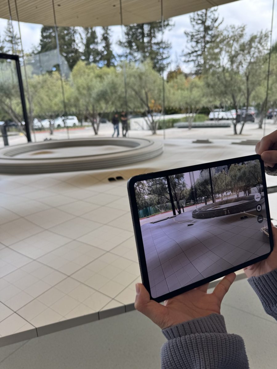 ここにはApple本社の模型があり、タブレットを通してその模型を見ることで、室内の構造やどのように風が流れていくかを知ることができ、建築デザインへのこだわりが垣間見えました!