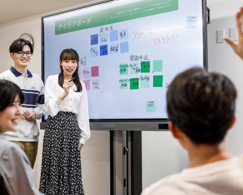 当校が育成するIT人材・コンピュータ技術者は、ずっとパソコンに向き合っている人材ではなく、人の意見をたくさん聞いて、人ためにものをつくり、人のことを想う人材です。